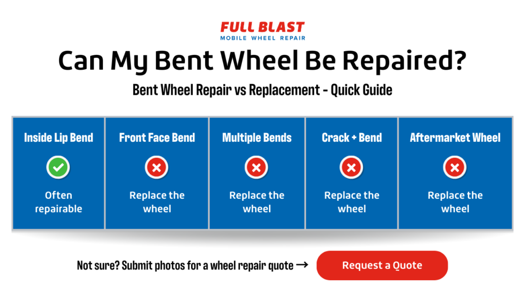 This guide explains when bent wheel repair is possible, when it isn’t safe, and what your options are if your wheel cannot be repaired.